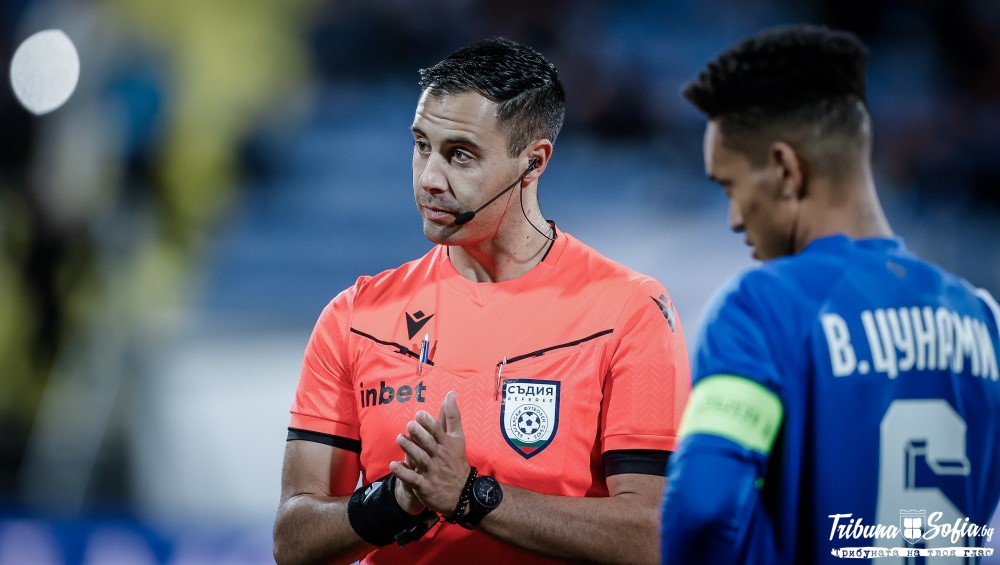 Негови асистенти ще са Георги Минев и Драгомир Милев, а четвърти съдия ще е Тодор Киров. За ВАР ще отговарят Мартин Великов и Красимир Кръстев, за съдийски наблюдател е назначен Йордан Иванов.