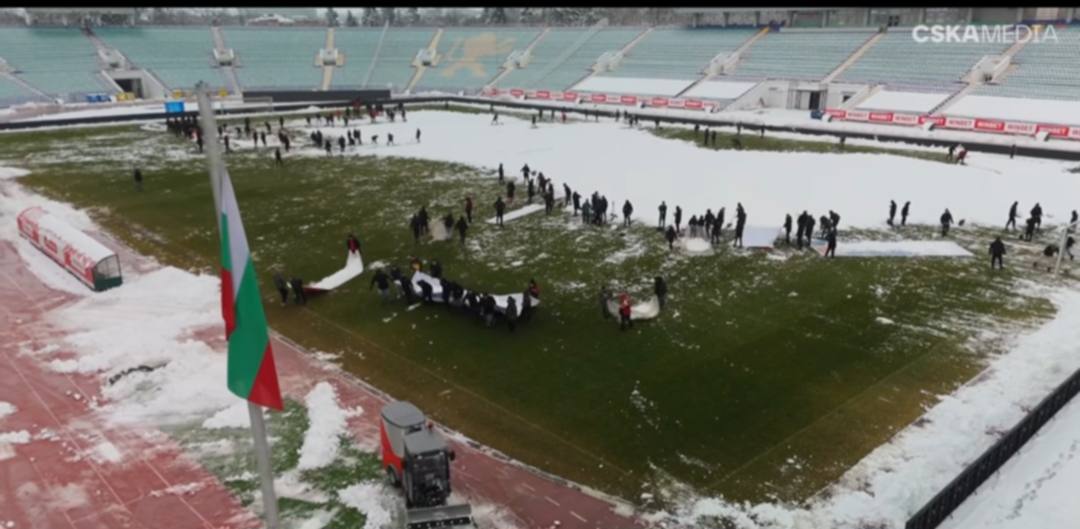 Благодарение на общите усилия на ръководството и администрацията на ЦСКА, на треньори и футболисти от Академия ЦСКА и на стотици „червени“ фенове, теренът на Националния стадион „Васил Левски“ бе почистен от натрупалия обилен сняг за рекордно кратко време. Заедно показахме, че любовта ни към ЦСКА не се спира пред нищо!