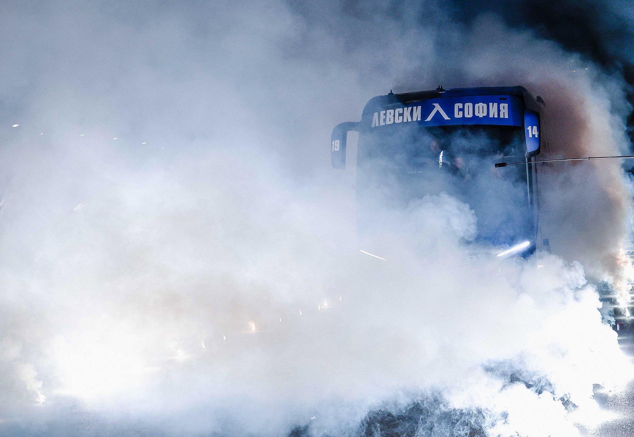 Левски представи своя нов клубен автобус по впечатляващ начин. „Сините“ публикуваха видеоклип, в който запалянковци посрещнаха новото возило с мощно пирошоу и любими песни пред сектор А на стадион „Георги Аспарухов“.