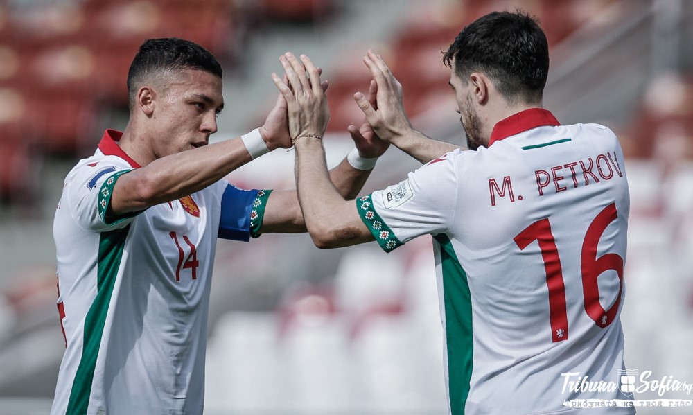 ДУЗПА И ГОЛ ЗА БЪЛГАРИЯ! В 34-ата минута Здравко Димитров проби по левия фланг в наказателното поле и бе подсечен от Кевин Дикс. Първоначално главният съдия не отсъди дузпа, но бе повикан от ВАР да гледа на монитора и промени решението си. Зад топката застана Марин Петков, който със силен удар в горния десен ъгъл на вратаря откри резултата – 0:1 за България.