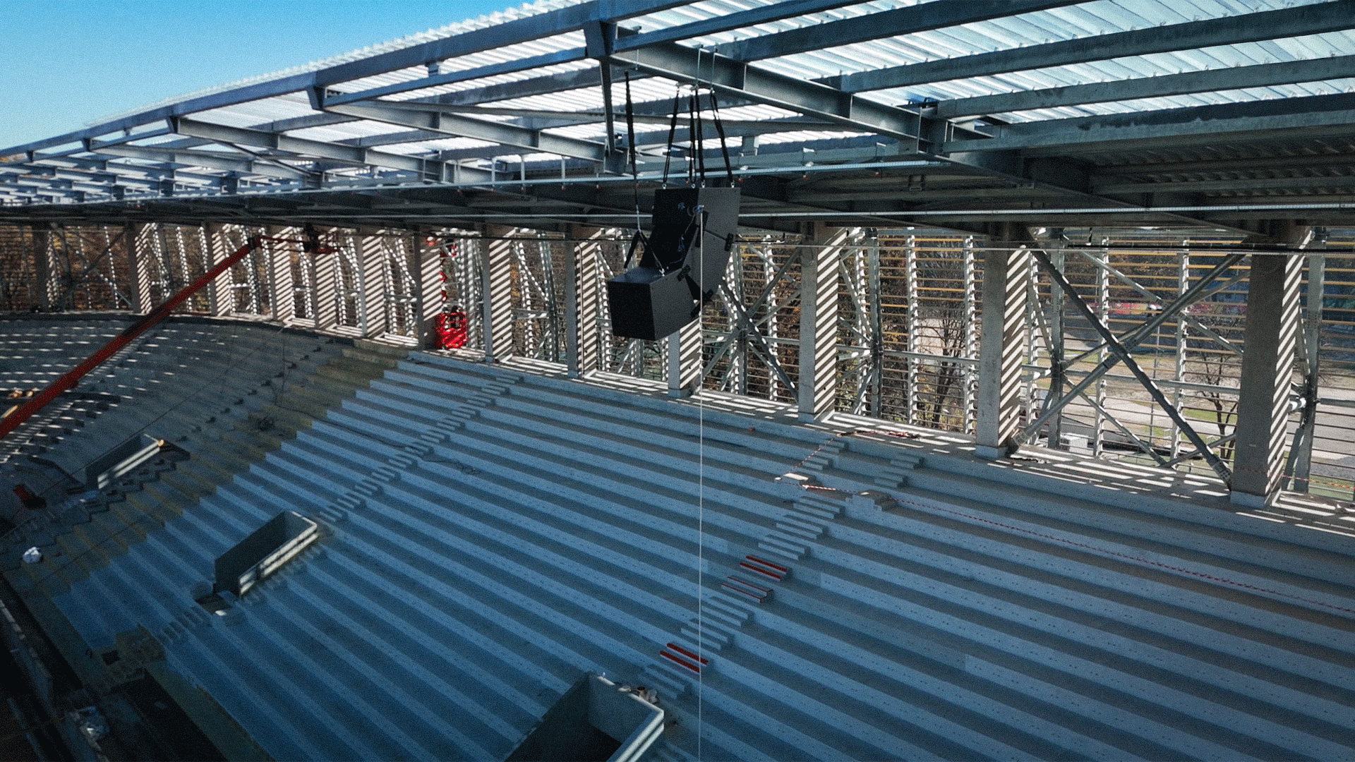 На новия стадион на „армейците“ ще има цял комлекс от аудиовизуални системи от последно поколение. ЦСКА тества един от клъстърите на озвучителната система, като на арената ще има общо 34 такива, а в Сектор „А“ ще бъдат поставени още четири аудио системи.